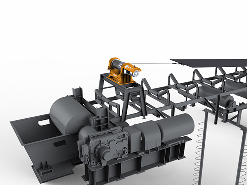 3、、控制本机进行收绳操作,,通过钢丝绳带动皮带移动,,,,可实现皮带的安装或更换