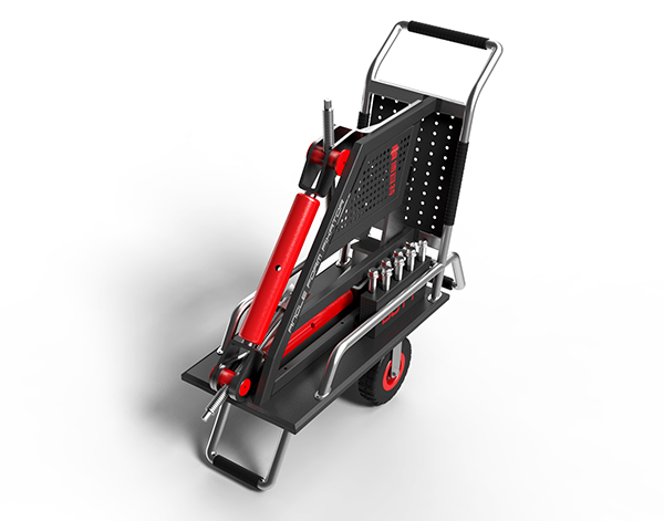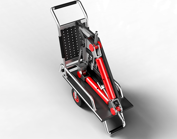 1. 车体采用框架式结构设计,,,,粗犷简洁,,,,整体宽度为370mm,,方便了现场狭小空间的存放和推拉,,倾斜的把手设计便于现场工人的使用。。。