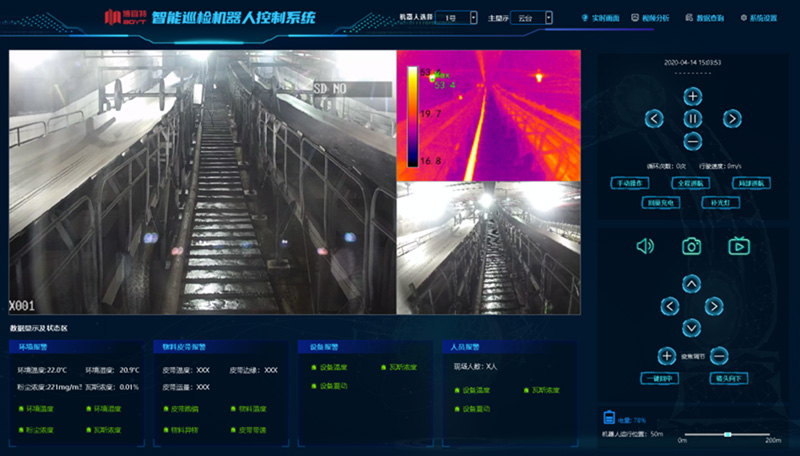 BYT-I型智能巡检管理系统集轨道系统、、、、挂轨式机器人本体系统、、、充电系统、、、通信系统、、、、监控后台系统为一体,,,融合了恶劣环境下机器人系统可靠性技术、、、、图像/热像采集与智能分析技术、、、机器深度学习技术、、危险预测告警技术、、、故障诊断与设备联动控制技术、、、、多传感器信息融合技术等先进技术。。。。对C0输煤栈桥进行全线路、、、、全方位、、、、全自主的智能化巡检管理,,实现无人化巡检、、、、可视化管理,,,提高输煤系统运行的安全性,,,,避免因人工巡检不全面、、、不量化、、、、人员素质依赖性强引起的各种安全事故与损失。。。。